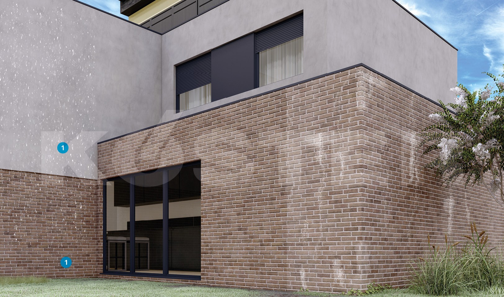 KÖSTER-jev sistem za zaščito fasad, betonske in zidane površine ščiti pred vdorom vlage in vode (dež, udarna voda, kondenz, idr.), istočasno pa je paropropusten, kar pomeni, da sistem vlago propušča ven IZ površine. S tem se lahko izognemo trajnim poškodbam zaradi dolgotrajne izpostavljenosti vlagi.