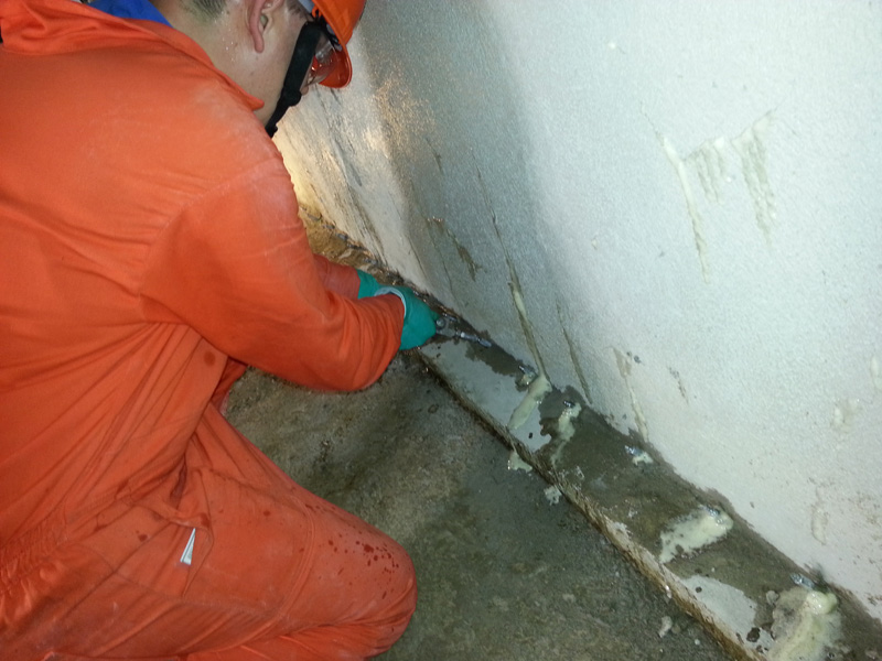 Inyección de fisuras: reacción de la espuma