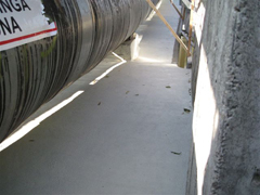 Concrete reprofiling and repair works, installation of a positive side waterproofing on top of the bridge.