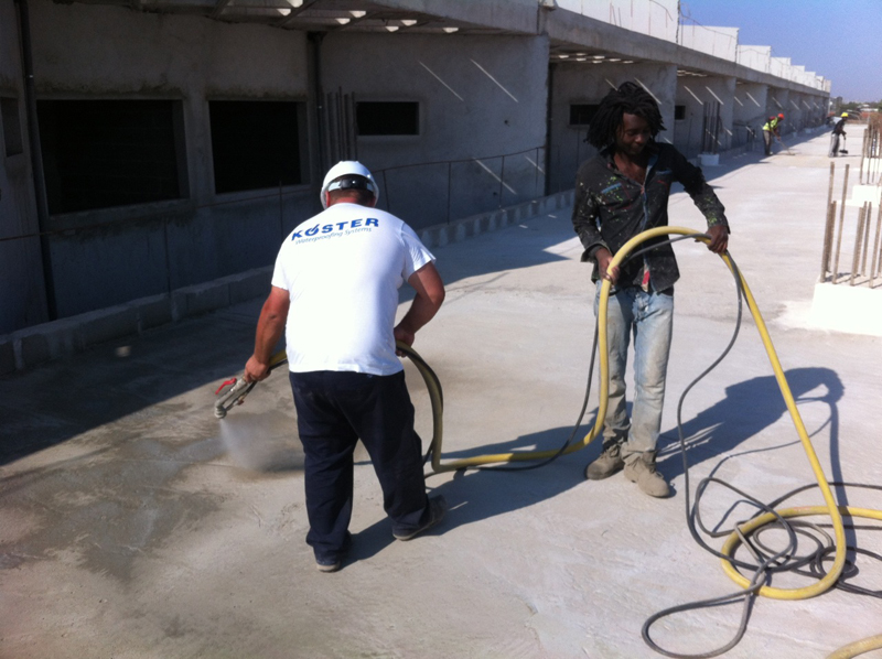 Flat roof waterproofing with KÖSTER NB 1 Grey, KÖSTER SB Bonding Emulsion, KÖSTER 21 and KÖSTER Joint Tape 20 (10.000 m²).