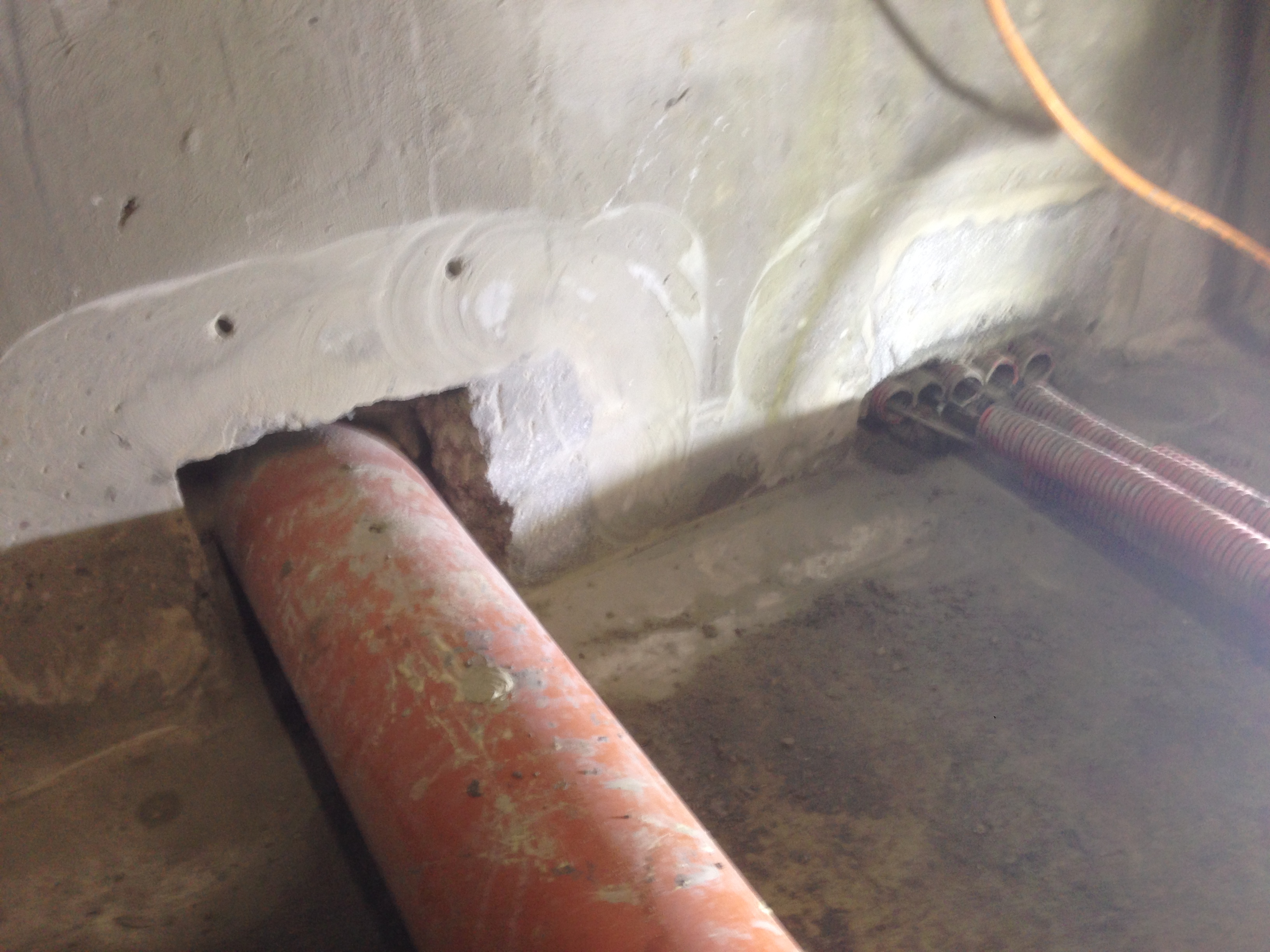 Injektáž priesakov, tesnenie prestupov / Injection, sealing of pipe and cable penetrations.