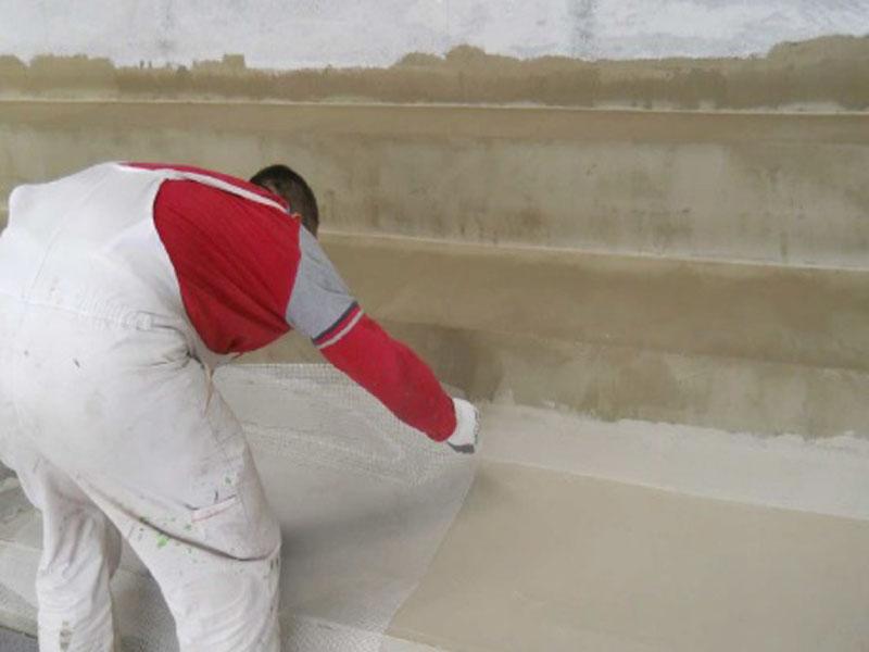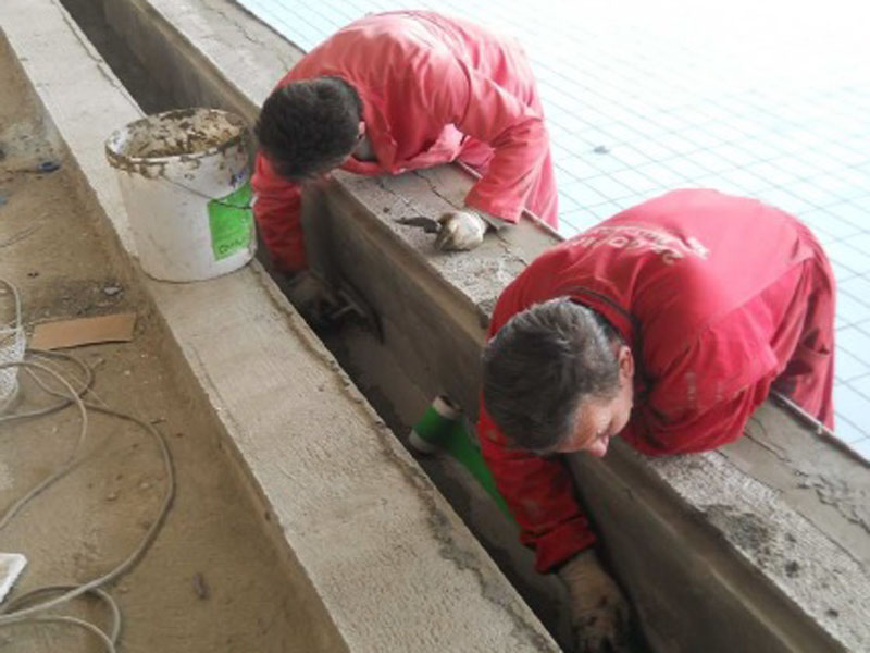 1. Step: Repair of dry and leaking cracks in the concrete substrate with KÖSTER KB-Pur 2 IN 1. 2. Step: Restoration and relevelling of the concrete substrate with KÖSTER Repair Mortar Plus and KÖSTER Betomor Multi A. 3 Step: Waterproofing the basin with KÖSTER NB Elastic Grey (for areas in danger of cracking).
