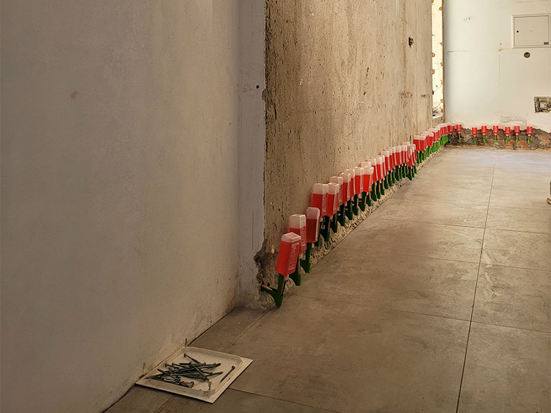Izdelava horizontalne bariere z vgradnjo Crisin 76 (injektiranje brez pritiska)