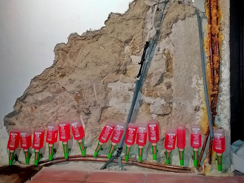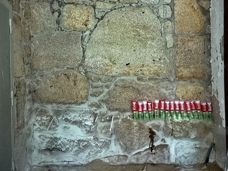 Horizontal Barriers against rising damp on 90 cm thick walls in XVII century house.