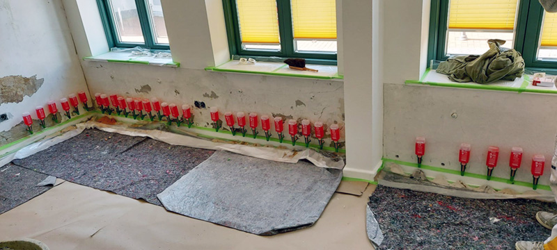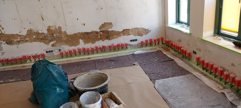 Izdelava horizontalne bariere z vgradnjo Crisin 76 (injektiranje brez pritiska)