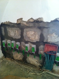 Application of KÖSTER KD system to waterproof the walls of a basement of a house which is about 500 years old. A horizontal barrier with KÖSTER Crisin 76 was also installed.