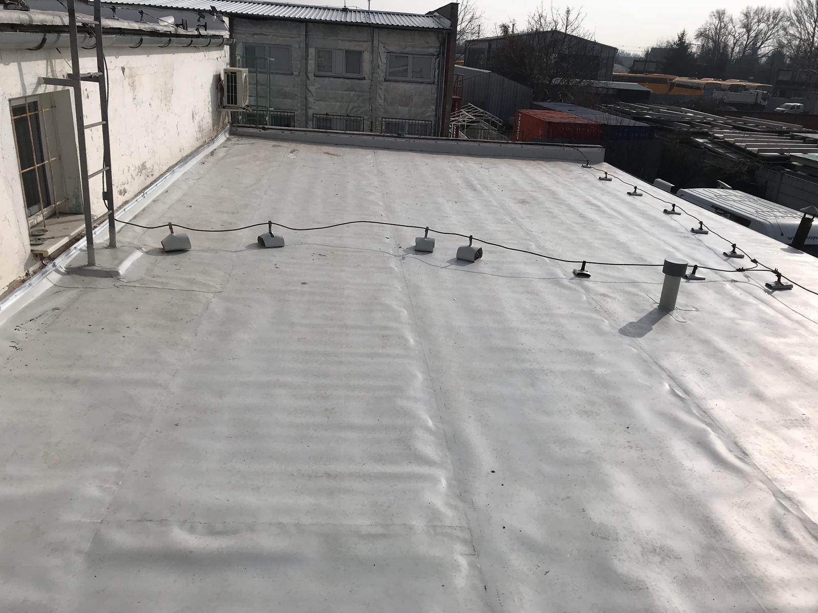 Sanácia hydroizolácie strechy pokrytej starými bitúmenovými pásmi. Na celú plochu sa aplikovala strešná fólia KÖSTER TPO 1,5. Strešné ukončenie pri dažďovej ríne sa urobilo s poplastovaným plechom KÖSTER TPO Metal Composite Sheet. Ukončenie fólie na stene objektu bolo zrealizované kotviacou lištou KÖSTER Wall connection profile 60 mm a zatmelením s PUR tmelom.