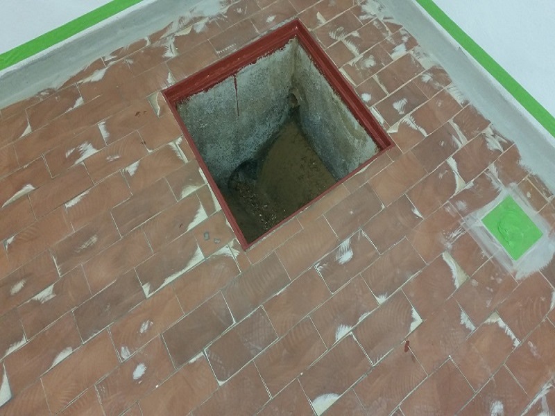 Sledila je izdelava zaokrožnic s KÖSTER reparaturno malto NC. Kovinski jašek v tleh se je premazal in zaščitil s KÖSTER Corosion Protection.